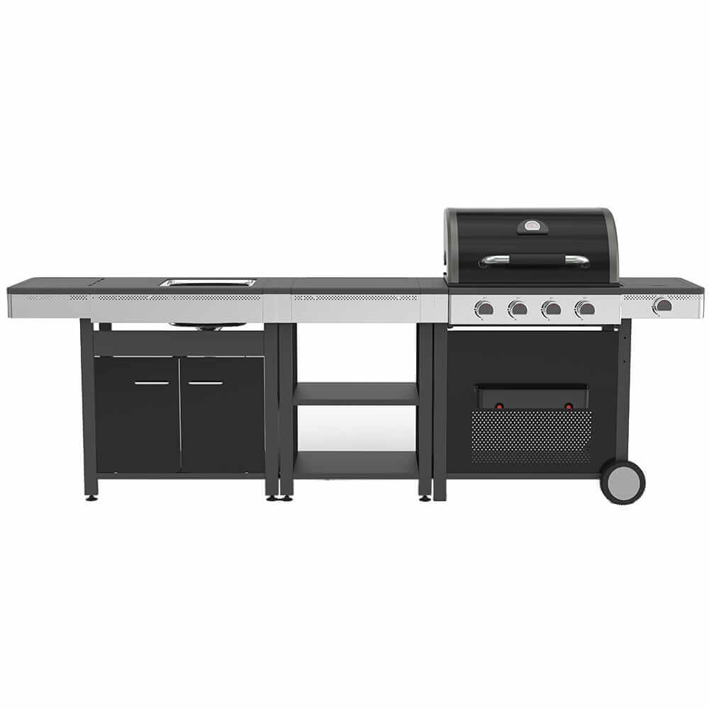 Churrasqueira Grelhador a gás com 3 Bocas e Pia 58X272,50X115,50cm